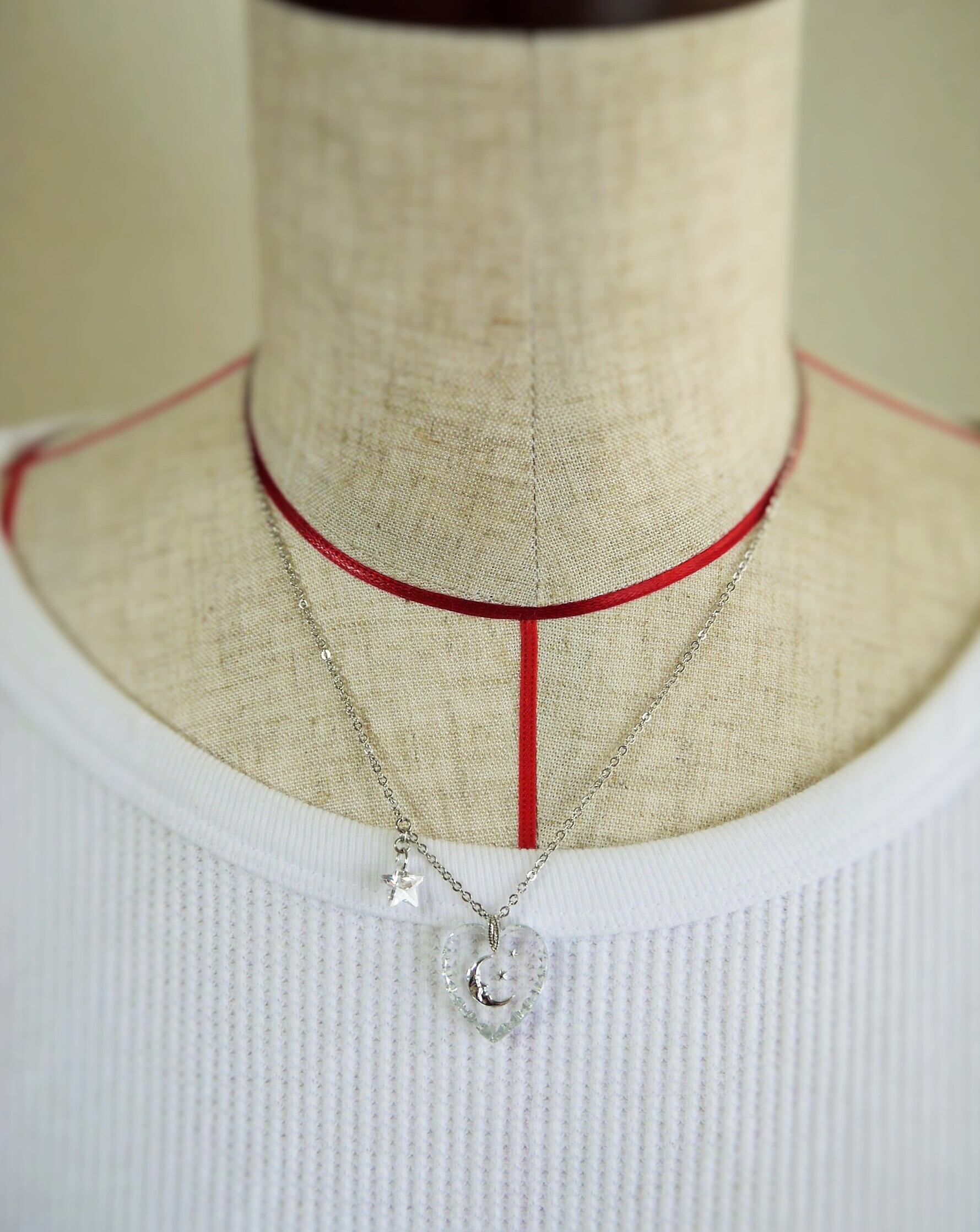 月と星のピアスと同じく、ペンダントトップはドイツ製のガラス細工で、インタリオ(沈み彫り)で三日月と星が描かれています。