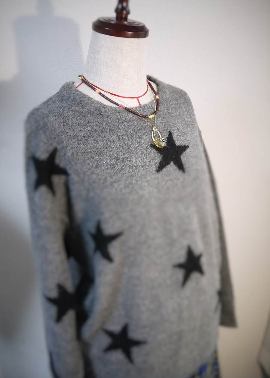 少し長めサイズなのでやや厚手のタートルネックに合わせることもできます。