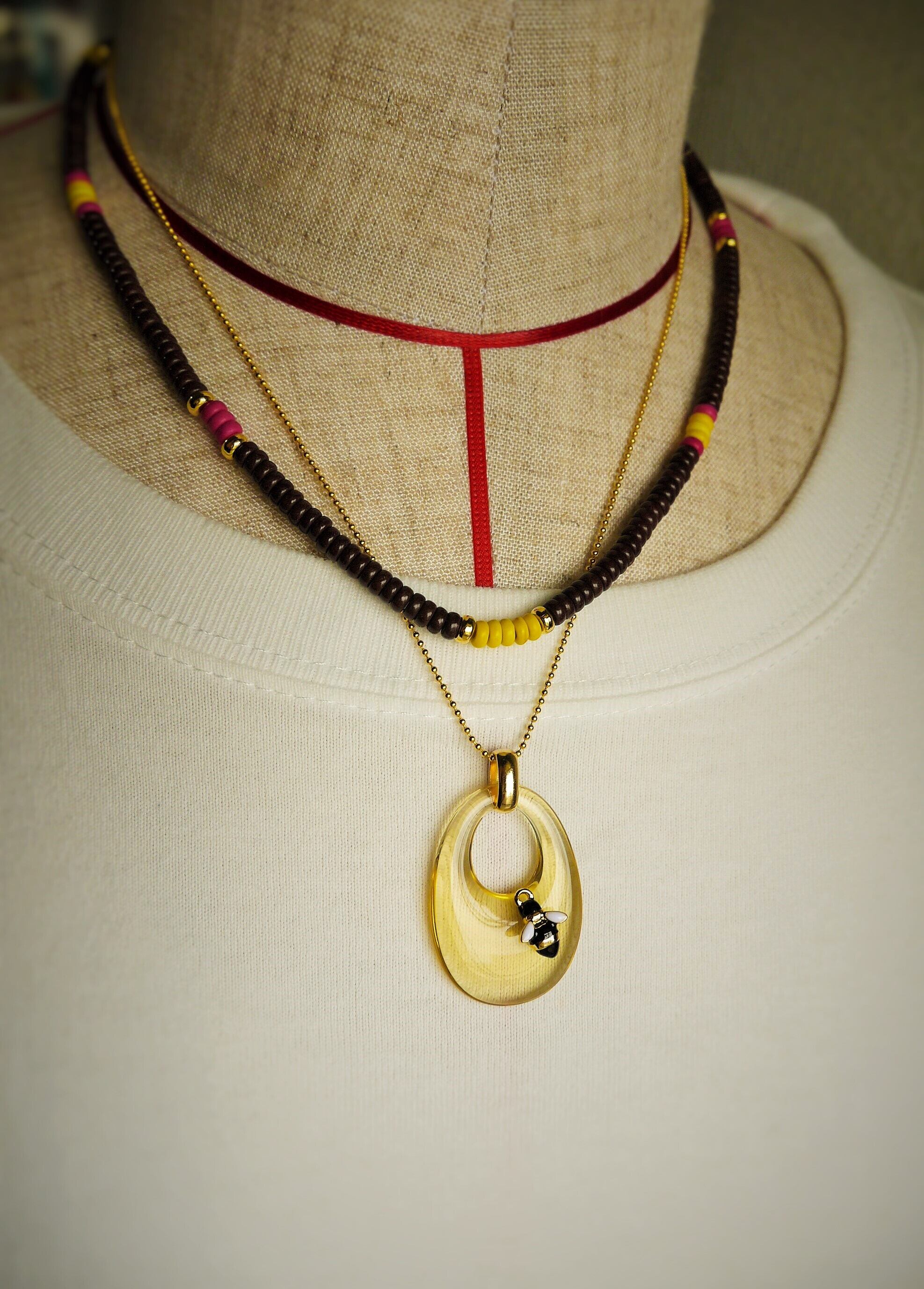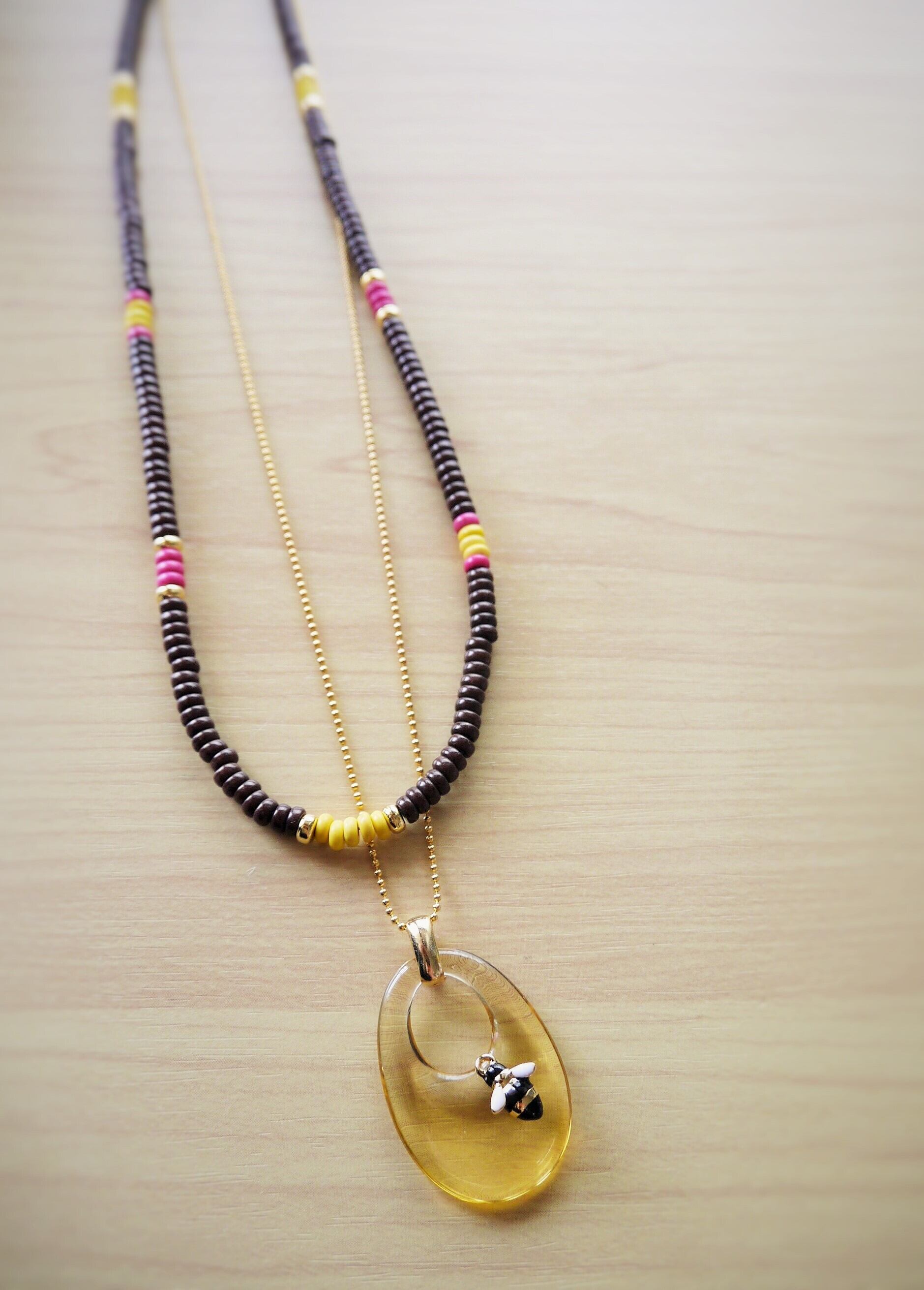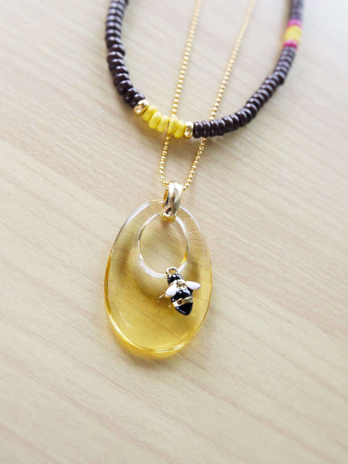 アクリル樹脂の蜂蜜に小さなミツバチをとまらせました。