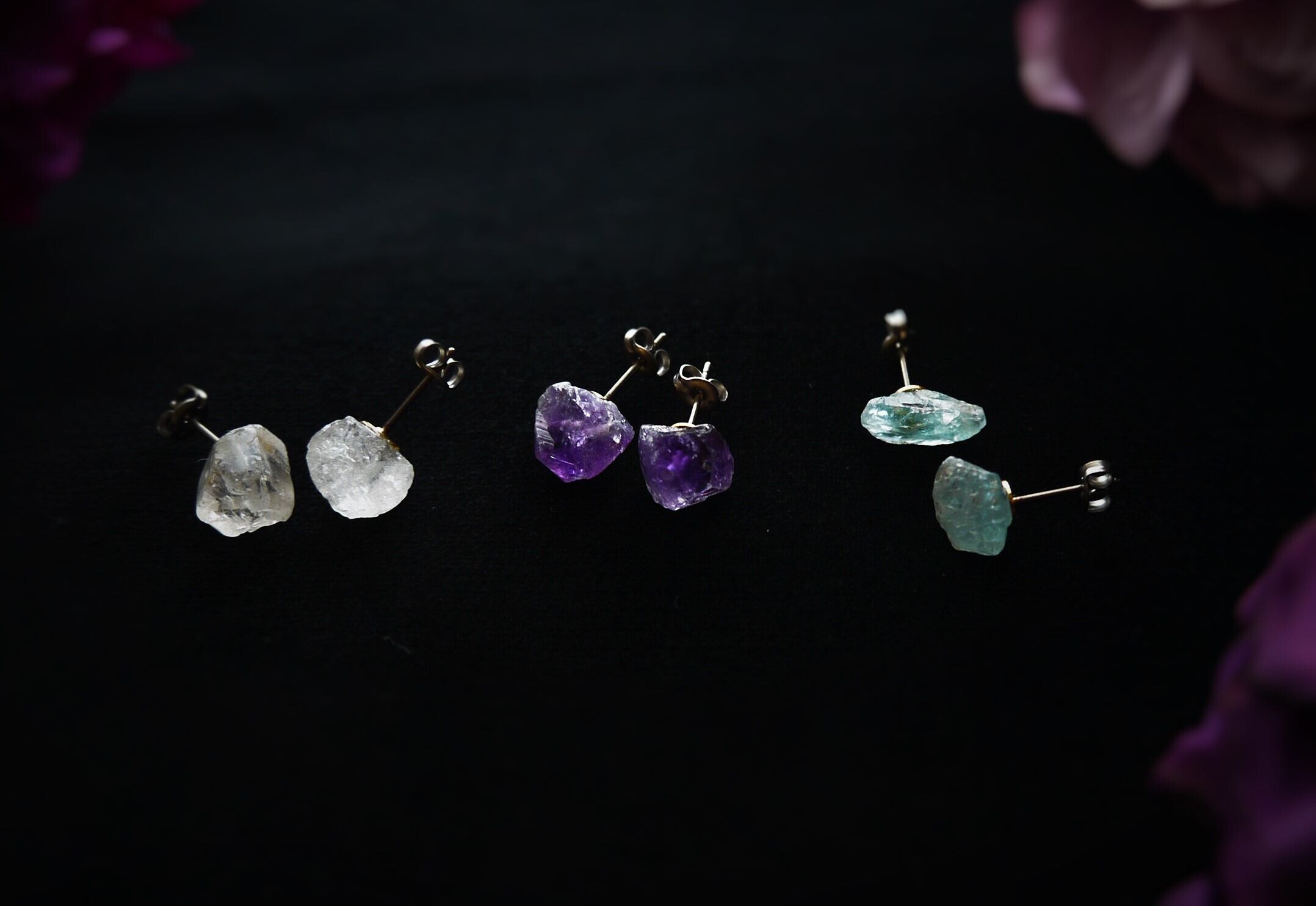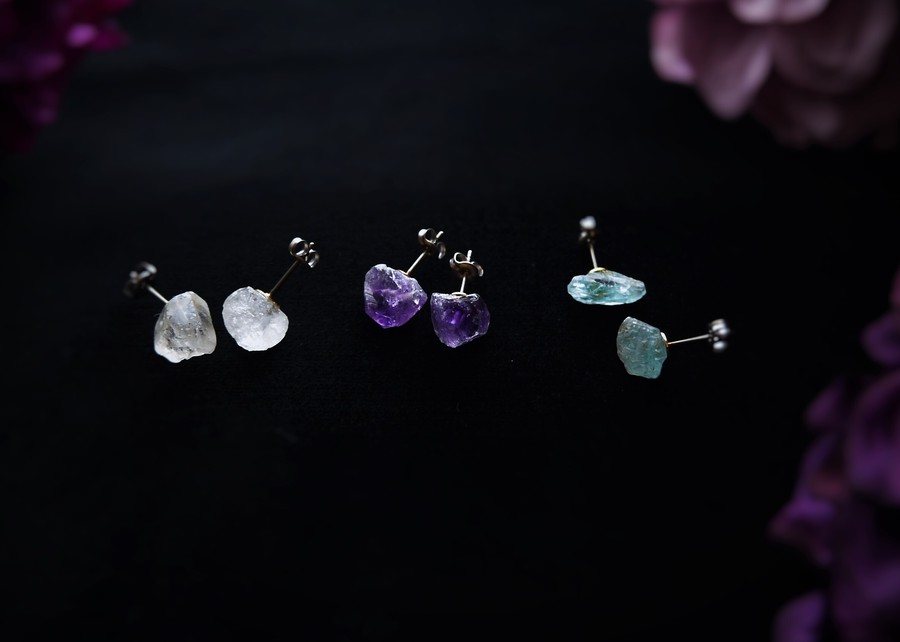 素材:天然石(水晶、アメジスト、アパタイト)、チタンポスト