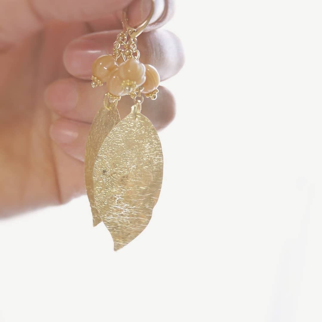 カラフルなチェコビーズと軽いスパンコール素材の葉のピアスです。